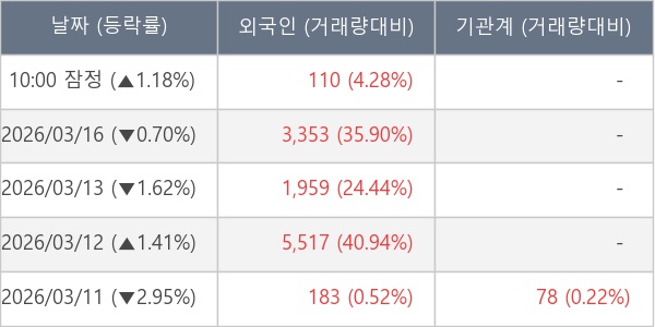 [표] 외국인ㆍ기관 순매매량 (단위 주)