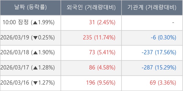 [표] 외국인ㆍ기관 순매매량 (단위 주)