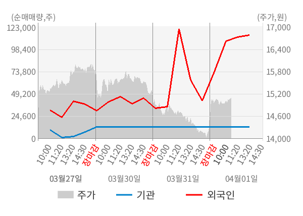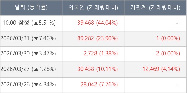 [표] 외국인ㆍ기관 순매매량 (단위 주)