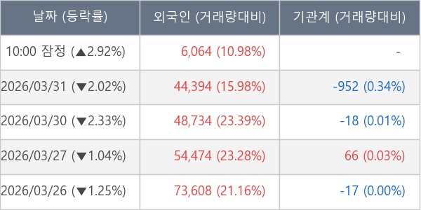 [표] 외국인ㆍ기관 순매매량 (단위 주)
