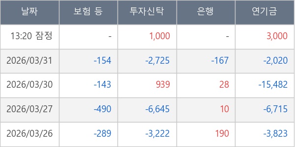 ※ 사모펀드 등 일부 기관의 순매매량은 표시되지 않음