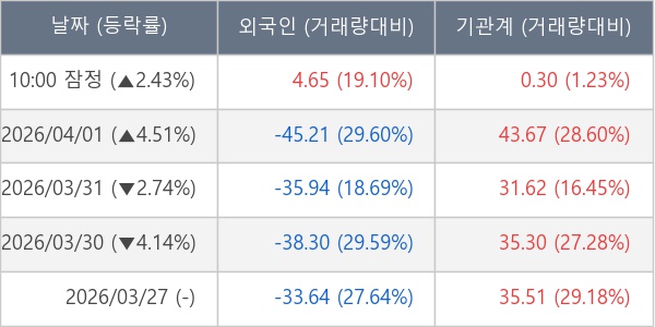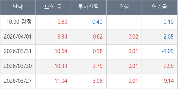 [표] 주요 기관별 순매매량 (단위 만주)