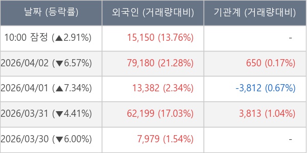 [표] 외국인ㆍ기관 순매매량 (단위 주)