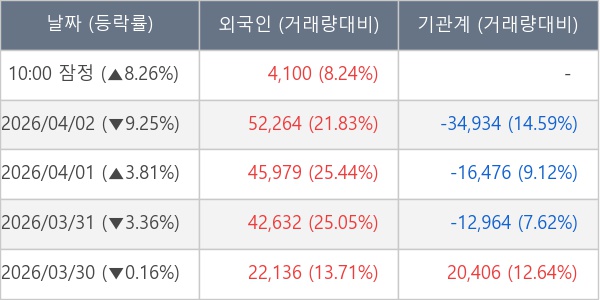 [표] 외국인ㆍ기관 순매매량 (단위 주)