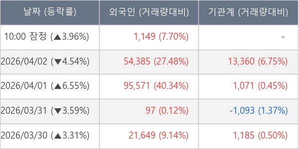 [표] 외국인ㆍ기관 순매매량 (단위 주)