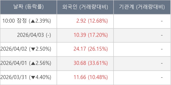 [표] 외국인ㆍ기관 순매매량 (단위 만주)