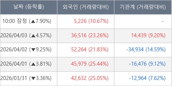 [표] 외국인ㆍ기관 순매매량 (단위 주)