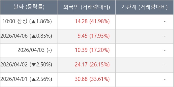 [표] 외국인ㆍ기관 순매매량 (단위 만주)