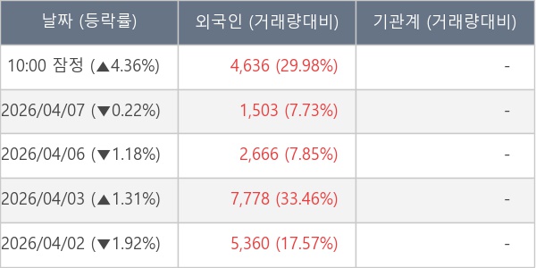[표] 외국인ㆍ기관 순매매량 (단위 주)