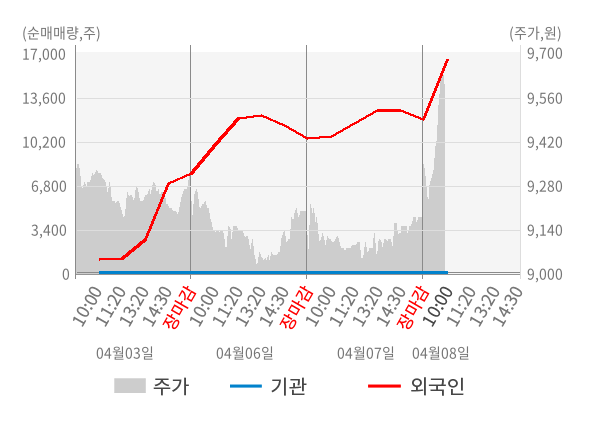 [서울=뉴스핌] 로보뉴스 = 08일 10시 15분 현재 파이오링크(170790)는 전일 대비 4.36% (현재가 9,580원) 상승했고, 외국인이 최근 7일 연속 순매수(누적 40,537주, 잠정) 행진을 하고 있다.