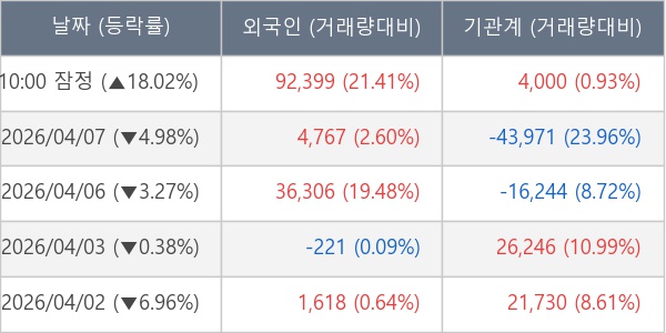 ※ 사모펀드 등 일부 기관의 순매매량은 표시되지 않음