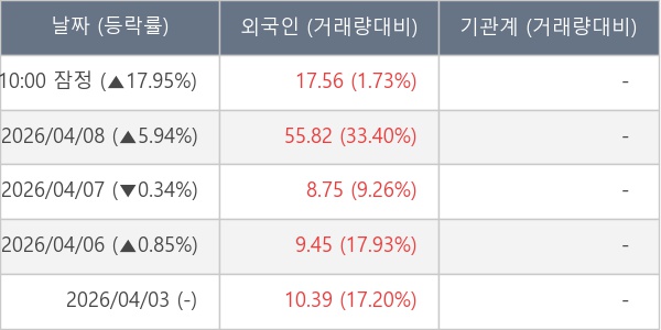 [표] 외국인ㆍ기관 순매매량 (단위 만주)