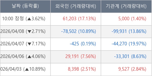 [표] 외국인ㆍ기관 순매매량 (단위 주)