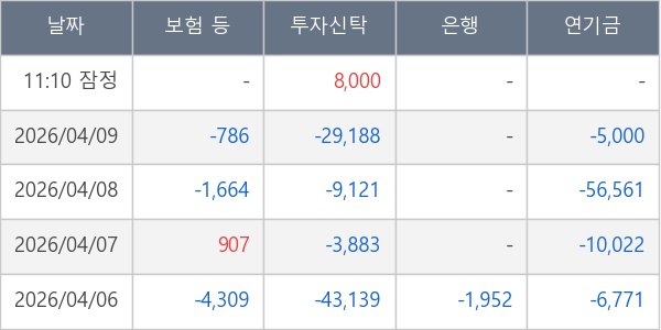 ※ 사모펀드 등 일부 기관의 순매매량은 표시되지 않음