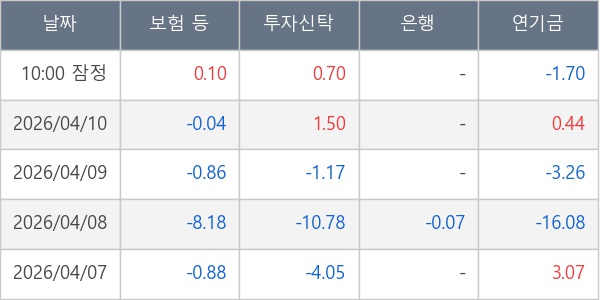 [표] 주요 기관별 순매매량 (단위 만주)