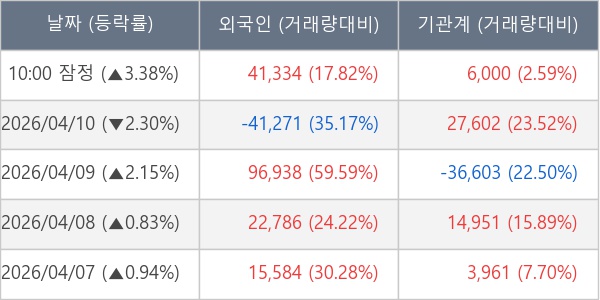 [표] 주요 기관별 순매매량 (단위 주)