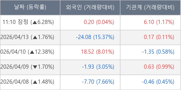 [서울=뉴스핌] 로보뉴스 = 14일 11시 30분 현재 파이버프로(368770)는 외국인과 기관이 각각 0.20 만 주, 6.10 만 주 순매수(잠정) 하면서 전일 대비 6.28% (현재가 24,550원) 상승하고 있다.