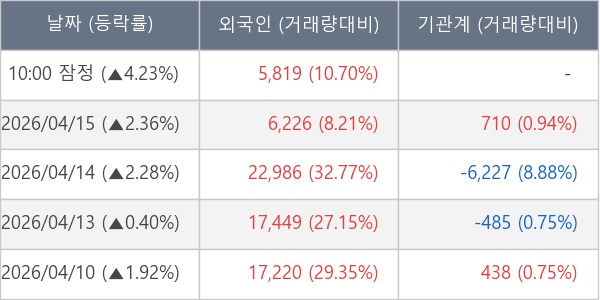 [표] 외국인ㆍ기관 순매매량 (단위 주)
