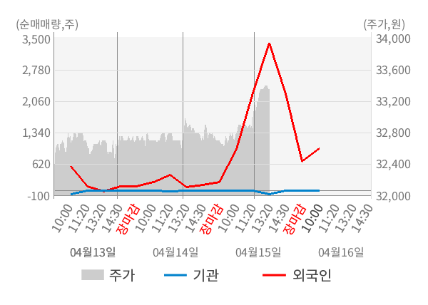 [서울=뉴스핌] 로보뉴스 = 16일 10시 15분 현재 사조대림(003960)은 전일 대비 1.99% (현재가 33,350원) 상승했고, 외국인이 최근 7일 연속 순매수(누적 7,341주, 잠정) 행진을 하고 있다.