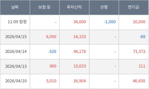 [표] 주요 기관별 순매매량 (단위 만주)
