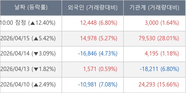 ※ 사모펀드 등 일부 기관의 순매매량은 표시되지 않음