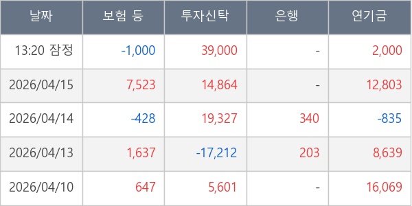 [표] 주요 기관별 순매매량 (단위 주)