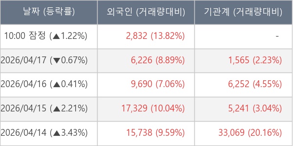 [표] 외국인ㆍ기관 순매매량 (단위 주)