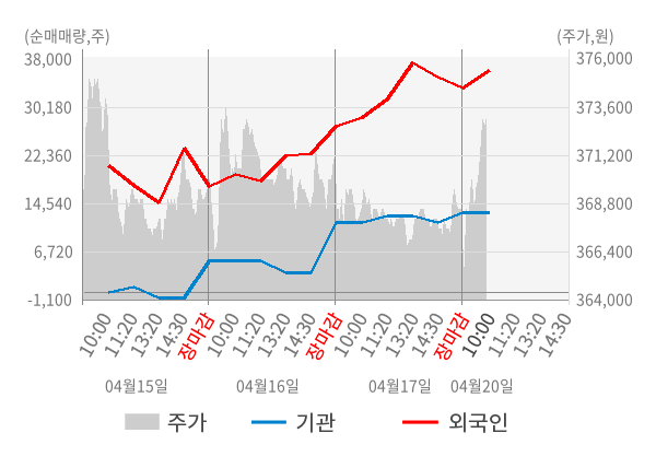 [서울=뉴스핌] 로보뉴스 = 20일 10시 15분 현재 SK(034730)는 전일 대비 1.22% (현재가 373,000원) 상승했고, 외국인이 최근 11일 연속 순매수(누적 22.13만 주, 잠정) 행진을 하고 있다.