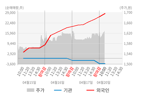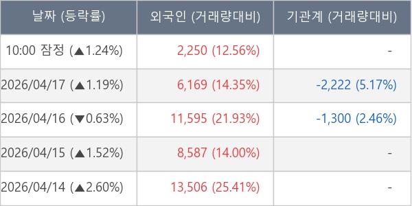 [표] 외국인ㆍ기관 순매매량 (단위 주)