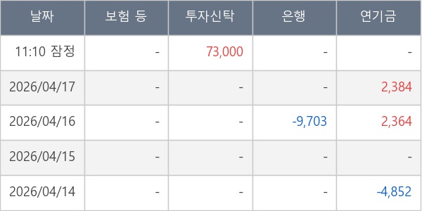 ※ 사모펀드 등 일부 기관의 순매매량은 표시되지 않음