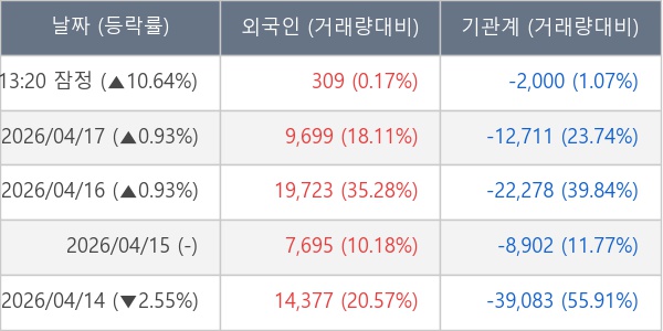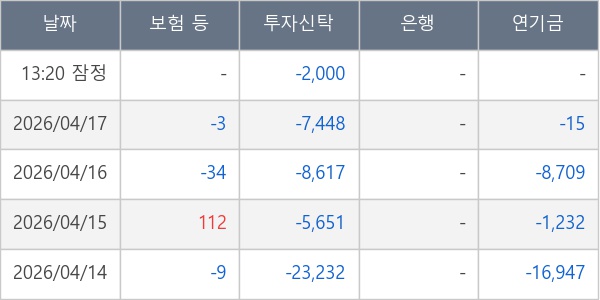 [표] 주요 기관별 순매매량 (단위 주)