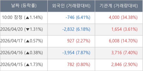 [표] 주요 기관별 순매매량 (단위 주)