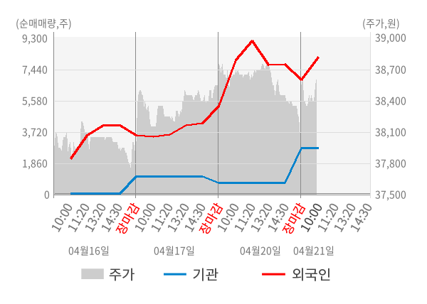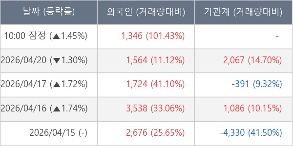 [표] 외국인ㆍ기관 순매매량 (단위 주)