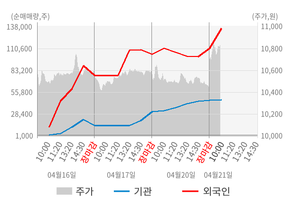 [서울=뉴스핌] 로보뉴스 = 21일 10시 15분 현재 동국제강(460860)은 전일 대비 3.64% (현재가 10,830원) 상승했고, 외국인이 최근 5일 연속 순매수(누적 15.35만 주, 잠정) 행진을 하고 있다.