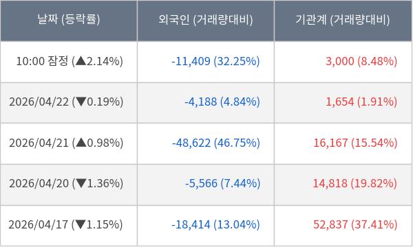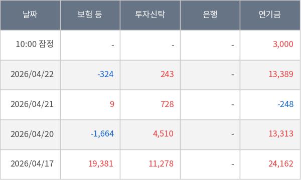 [표] 주요 기관별 순매매량 (단위 주)