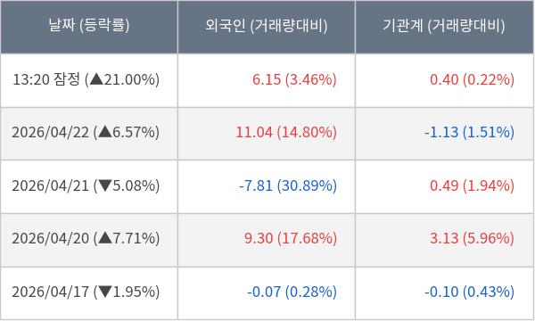 [장중수급포착] 리센스메디컬, 외국인/기관 동시 순매수… 주가 +21.00%