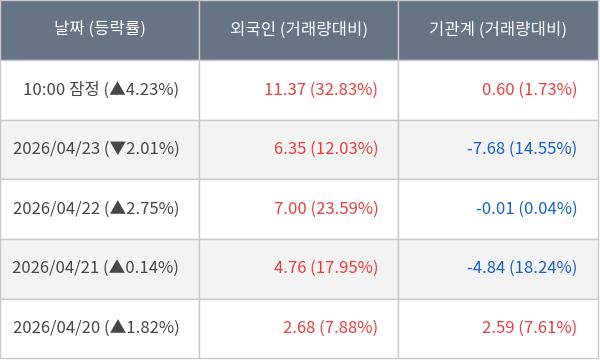 [표] 주요 기관별 순매매량 (단위 주)