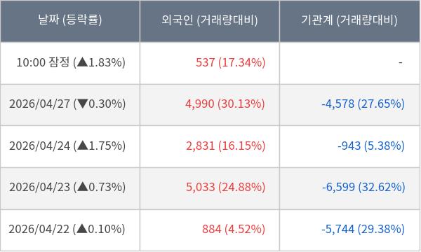 [표] 외국인ㆍ기관 순매매량 (단위 주)