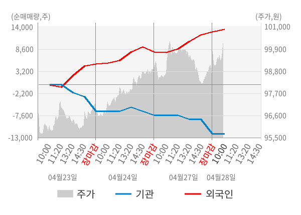 [서울=뉴스핌] 로보뉴스 = 28일 10시 15분 현재 동아쏘시오홀딩스(000640)는 전일 대비 1.83% (현재가 100,400원) 상승했고, 외국인이 최근 5일 연속 순매수(누적 14,275주, 잠정) 행진을 하고 있다.