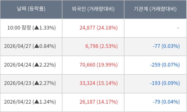 [표] 외국인ㆍ기관 순매매량 (단위 주)