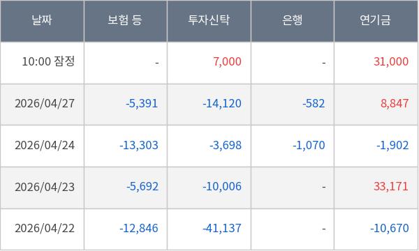 ※ 사모펀드 등 일부 기관의 순매매량은 표시되지 않음