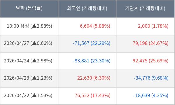 ※ 사모펀드 등 일부 기관의 순매매량은 표시되지 않음