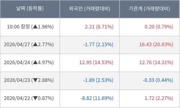 ※ 사모펀드 등 일부 기관의 순매매량은 표시되지 않음