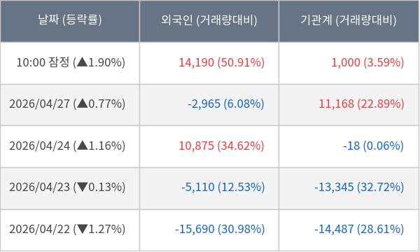 ※ 사모펀드 등 일부 기관의 순매매량은 표시되지 않음