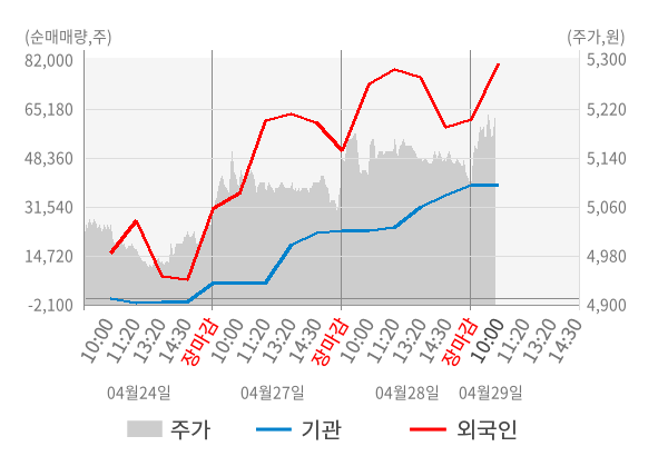 [표] 외국인ㆍ기관 순매매량 (단위 주)