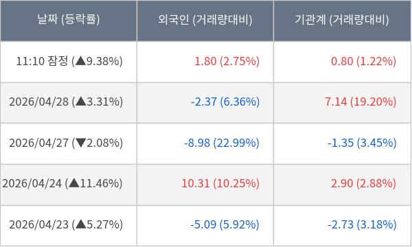 [표] 주요 기관별 순매매량 (단위 주)