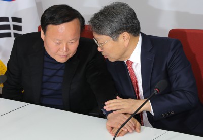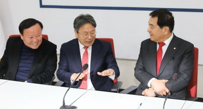 [사진] 활짝 웃으며 대화 나누는 강기정-김광진-심재철-김재원