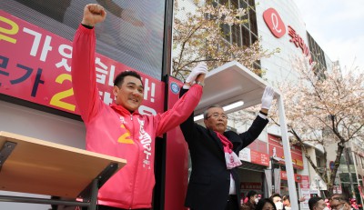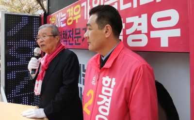 고양을 지역 찾은 김종인 총괄선대위원장 '함경우 후보 지원 유세'
