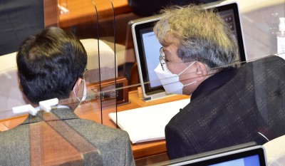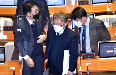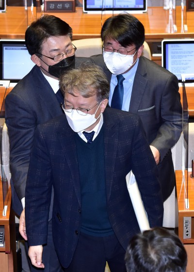 쌍특검 재표결 앞둔 국회 본회의...주식 시세 확인하는 권칠승 의원