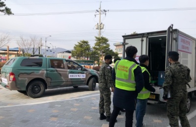 [군위=뉴스핌] 이민 기자 =25일 오전 군위군 보건소에 아스트라제니카 백신을 실은 운송트럭이 도착, 관계자가 백신을 이송하고 있다. 2021.02.25...